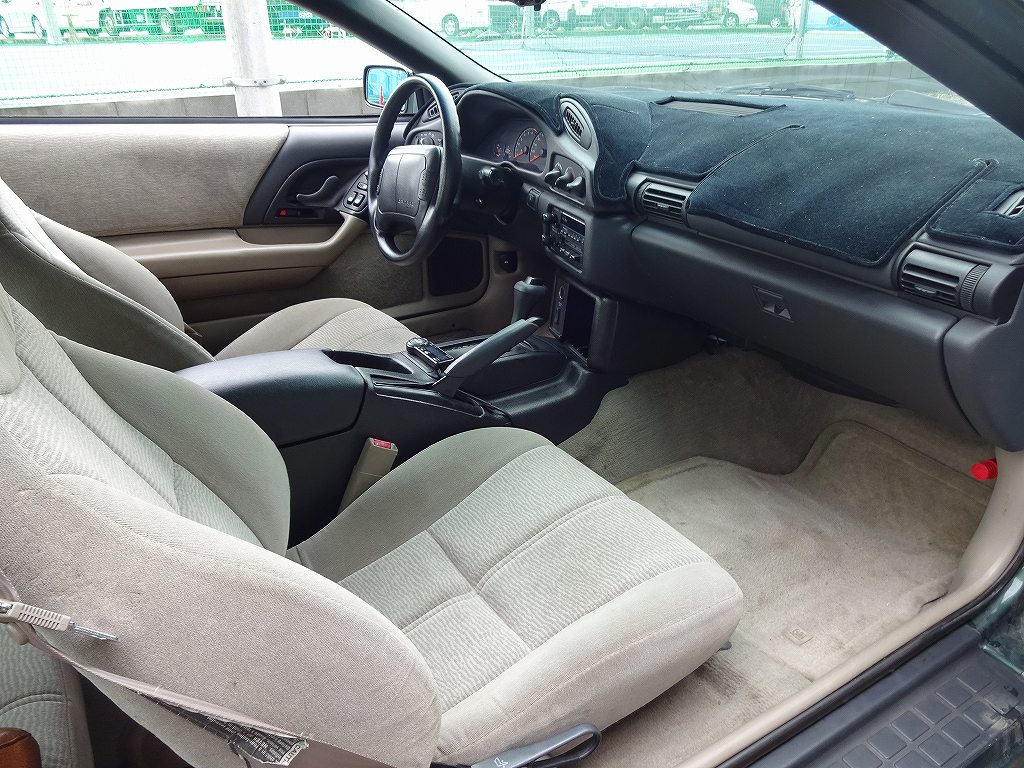 サイドビューを見ると解りやすいのですが、この時代のカマロは歴代最もシャープなボディラインでした。ボンネットからフロントウインドウ、ルーフに続くライン等はフェラーリ、ランボルギーニレベルのシャープなラインです。ちなみにこのモデルのカマロは日本では新車価格250万円とポニーカーと呼ぶには微妙な金額でしたが、中古となった今ではここまで安くなっています!しかもこちらの個体はヤナセにてエアコン交換済みで、走りも何の問題もありません。のんびり走れるクーペをお探しの方はぜひご検討下さい。