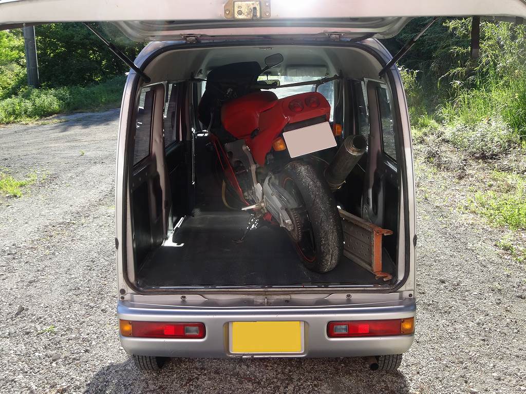 個人的に「軽自動車」と言う単語の最初の「軽」と言う漢字は非常に誤解を生みやすいと思っています。「軽」と書いてあるから燃料は軽油だと思ってセルフサービスのスタンドでトラブルになる方もいれば「軽自動車だから小さい。」と言う理由で本来のスペックが見えなく、間違った買い物をしてしまう方もいます。まず「軽自動車だから小さい。」と言うイメージを捨ててみましょう。現在人気のダイハツ・タントやスズキ・パレットのようなトールワゴンと呼ばれるタイプはそこらの1600ccクラスの普通車よりも全然広いです。リアシートなんてリムジンばりの広さです。180cm以上の大柄な男性が足を組んで乗ってもまだ余裕があります!そして、問題の軽バンですがこれは上記写真のように250ccクラスのバイクを積んでもまだ余裕があります。ここから50ccのスクーターをさらに積み足す事すら可能です。