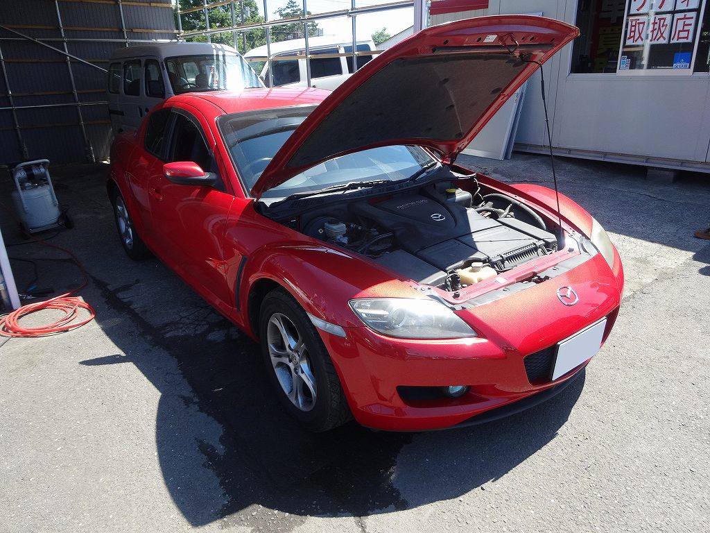先日、去年当店でマツダ・RX-8を購入されたY様がオイル交換でご来店されました。そろそろ暑くなる時期ですので、オイル交換は絶対にしておくべきメンテナンスです。ぜひお近くの方はご予約頂ければと思います!当店スタッフ一同「せっかく当店でご購入頂いたのですから、なるべくトラブル無くご愛用頂きたい!」と言う強い気持ちがあります。そのために購入頂いた方にはすべてのメンテナンスやカスタムを特別価格でご案内しておりますし、ブログ等で「数千円のオイル交換をしなかっただけで、エンジンが壊れて数十万円の修理費がかかる事になる可能性もあるので必ず半年、または5000km以内にオイル交換を行いましょう!」と注意を勧告させて頂いているのですが、最近ある事に気が付きました。それは「ブログを見て下さるお客様は、私達が何も言わなくても自分で来店される。」と言う事です。販売した際にお付き合いのある工場が無かったり、自身でメンテナンスしないと言う方には「メンテナンスも特別価格ですし、車のコンディション維持のためにも定期的にオイル交換にお越し下さいね?」とご案内させて頂きますし、時間のある時に連絡させて頂いておりますがご来店される方はごく少数です。確かに車屋のブログを見るくらいに車好きな方だったら、自身の愛車のコンディションには気を配りますよね・・・やはり電話等での連絡を増やすしかないのでしょうか?ちょっと色々と対策を検討してみたいと思います!