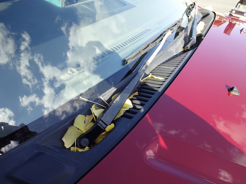 この時期になると、色々な樹木の葉が落ちるようになって来ます。眺めるだけなら風情があって良いのですが、車を停める場所や走行する場所によっては上記画像のように落ち葉が車に挟まる事があります。人によっては「今度洗車する時に掃除すればいいや。」等と思うみたいですが、落ち葉が挟まったままだと間接的に車にダメージを与える場合があるので、個人的にはなるべく早く取り除いた方が良いと思います。上記画像は本当に数時間停めていただけなのでそこまでの量の落ち葉はありませんが、このような排水関係の場所に落ち葉がたくさん挟まると、本来のルートでの排水が不可能になる場合があります。本来排水の事を考慮されていない構造の箇所に水が流れ込むと、良い事はほぼありませんのでなるべく早く落ち葉を取り除いて本来のルートを確保してあげる事が大切です。また狭い場所に挟まった落ち葉が水を吸ってしまうと、乾いた状態の時よりも掃除がかなり大変になります。水を含んで劣化した落ち葉は塗装にダメージを与える場合もあるので、手遅れになる前に取り除く事が重要です。落ち葉を取り除くのが困難な場所と言う事は、ポリッシャー等で塗装の状態を整える事も困難な場所と言う事ですので、取れるうちに取ってしまいましょう。乾いた状態であれば、掃除機等で比較的簡単に吸い取る事が出来ますが、水分を含んでしまったら貼り付いてしまって掃除機でも無理になる事が多々あります。水が冷たい季節ですので洗車や掃除をする意欲が失せがちになりますが、自分の愛車のためですのでぜひ頑張って頂きたいと思います。