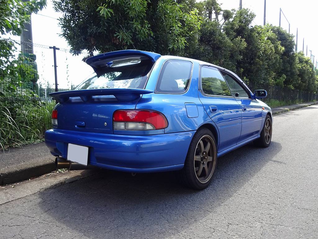 後ろから見ると、ワゴンと言うよりもハッチバックと言う方がピッタリ来る感じのデザインです。ちなみにこちらは希少な最終型のSTI6!しかも500台の限定モデルです!ちなみにこちらの車は当店とずっとお付き合いのあるお客様からの下取りですので、履歴がきちんと解っています。5年程前にはクラッチ交換も行っておりますし、タイミングベルトも交換済です。軽い修復暦はございますが、きちんと修理されているので走行性能もまったく問題ありません。もちろんエンジンも絶好調!ちなみに2016年9月1日現在、カーセンサーでGF8の在庫は日本全国で7台しかありません。しかもブルーは当店のみ!興味がある方はぜひお早めにご覧下さい!