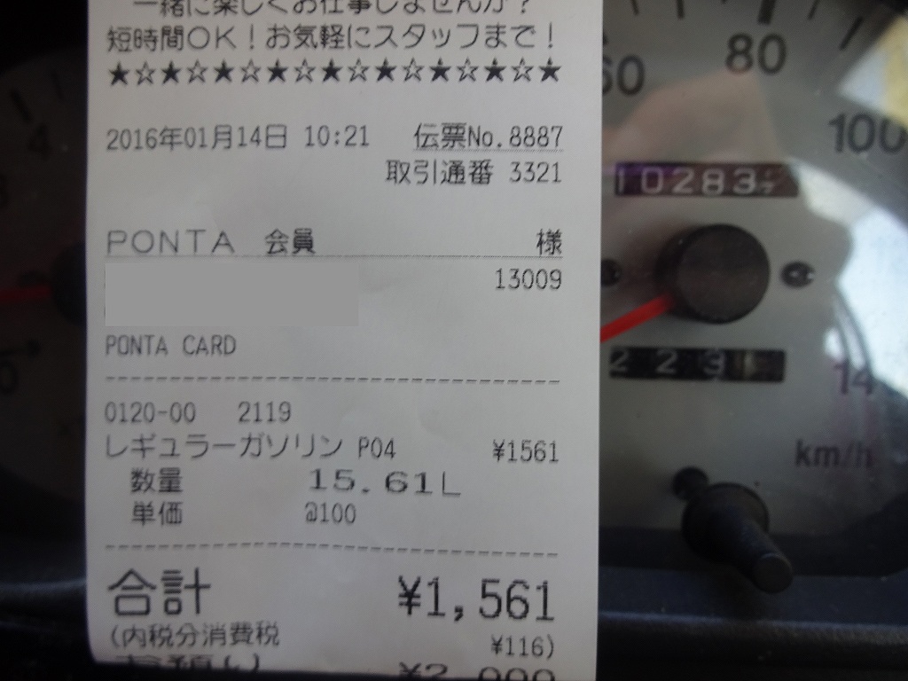 走行距離:223km 給油量:15.61L