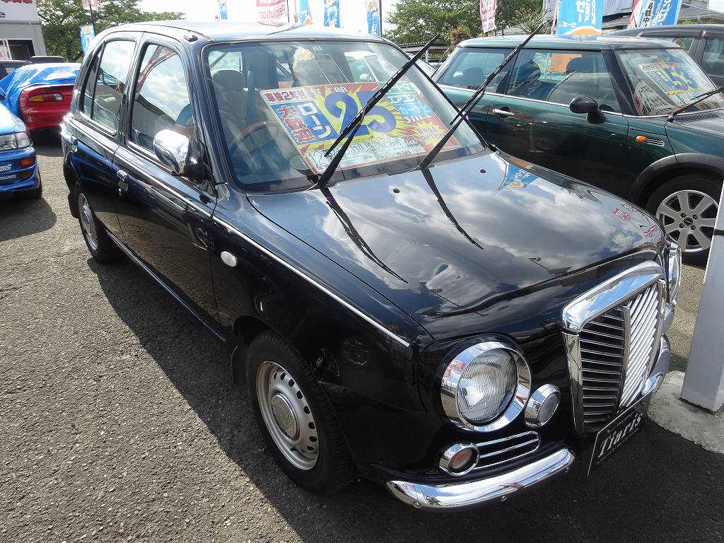 今回もまた珍しい車が入庫しました!日産・マーチボレロです!基本的にマーチなのですが内外装がクラシックスタイルに変更されており「普通のファミリーカー。」と言うイメージから「ちょっとクラシックテイストの入った、お洒落な1台!」と言う感じになっています。フロントマスクもそうですが、全体的にメッキパーツが多用されていて独特の魅力に溢れています。内装はウッドパネルが多用されており、上品な味わいのある空間への仕上がっています。内外装は普通と違う、独特な車へと仕上がっているのに機械的な部分はマーチなので維持費が安いと言うのが最大の魅力でしょうか?個人的にはこの車を見ると、ある車を思い出します。