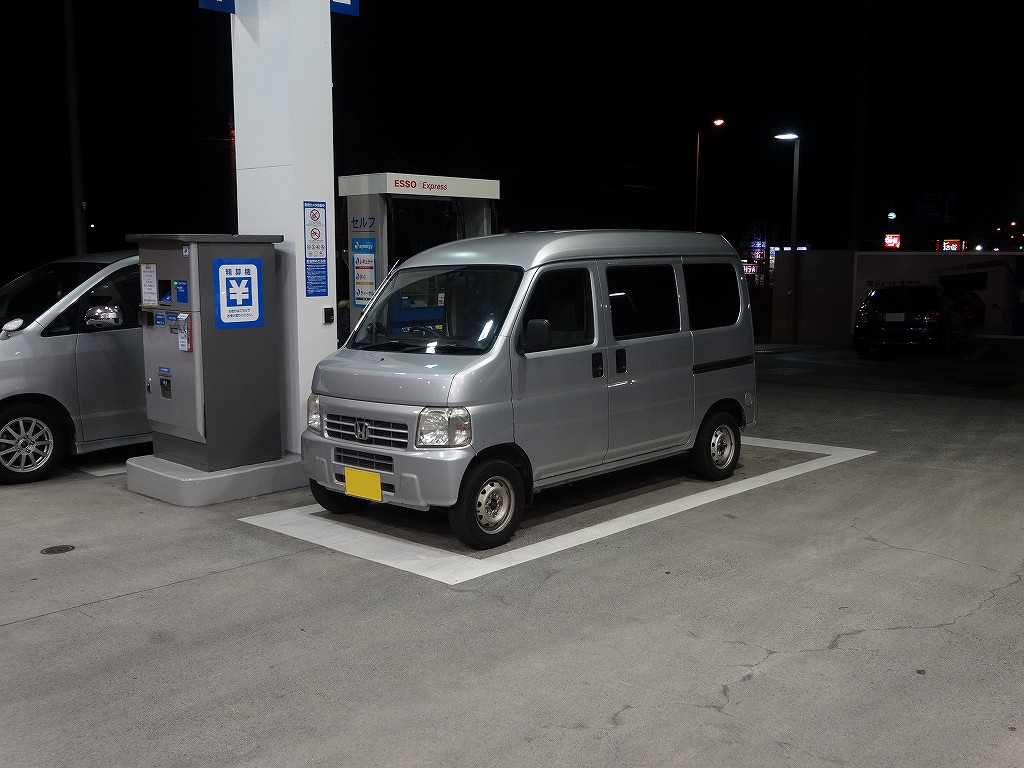 さて、上記数字を見た上で今回の実験の結果をご覧下さい。実験した車は当店在庫のホンダ・アクティバンです。最も燃費が悪いと言われているフルタイム4WD!エンジンはNA(ターボ無し)で5MT、時期が時期なのでスタッドレスタイヤと言うある意味最悪の装備でのテストです。計測条件はガソリンをフルに入れてから走行。あまり短距離だとデータにならないので200km以上走行してから、出発時と同じようにフルに給油して入った量で走行距離を割ると言う方式です。