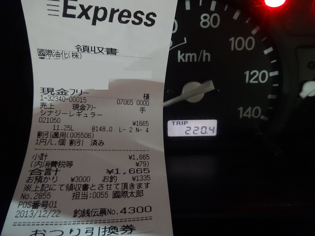 走行距離:220.4km 給油量:11.25リットル