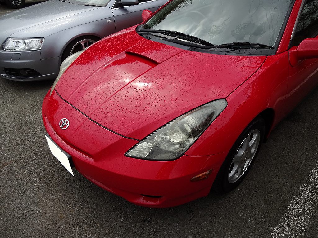 秋の天気は変わりやすいと言いますが、この変わりやすさのおかげでヒドい目に遭いました。先日、お昼くらいの時間にトヨタ・セリカのお引渡しがありました。もちろんご購入頂いた車を渡す大切な時ですので当店では出来る限りキレイにして、その車の持つ魅力を最大限まで引き出した状態でお渡しするようにしています。当日の天気は1日晴れと言う予想だったので、朝に洗車をしてから車検に行き、その後内装と最終仕上げをする予定だったのです。朝の洗車が終了してから車検までは何の問題も無かったのですが、店に戻って来た途中で雨が降って来ました。「せっかく洗車したのに・・・でもこのまま降り続くなら洗車し直しても意味無いし、このまま渡すか。」なんて思ったのも束の間、すぐに止んでしまいました。「どんだけちょっとだけ降ってるんだよ!」とツッコミながら2度目の洗車をしました。その後内装と外装の最終仕上げをして、用事があったので銀行に向かったらまた雨が降って来ました!「どんだけ天気予報は適当なんだ・・・」と思いながらも「今度はずっと降るだろう。」と思っていたのですが、こう言う時に限って予想はハズレます。また20分程で雨は上がり、最悪な事に強い日差しが出て来たのです。今回のセリカは同色オールペイント済みな車だったので尚更ウォータースポットなんて付けられません!速攻で店に戻ってまた洗車です。さすがにその後は何も起きず無事お引渡しが完了しましたが、ここまで1日に何回も洗車をしたのは初めてでした。秋の天気に振り回された1日でしたが、お客様がとても喜んでくれたので良しとしましょう。