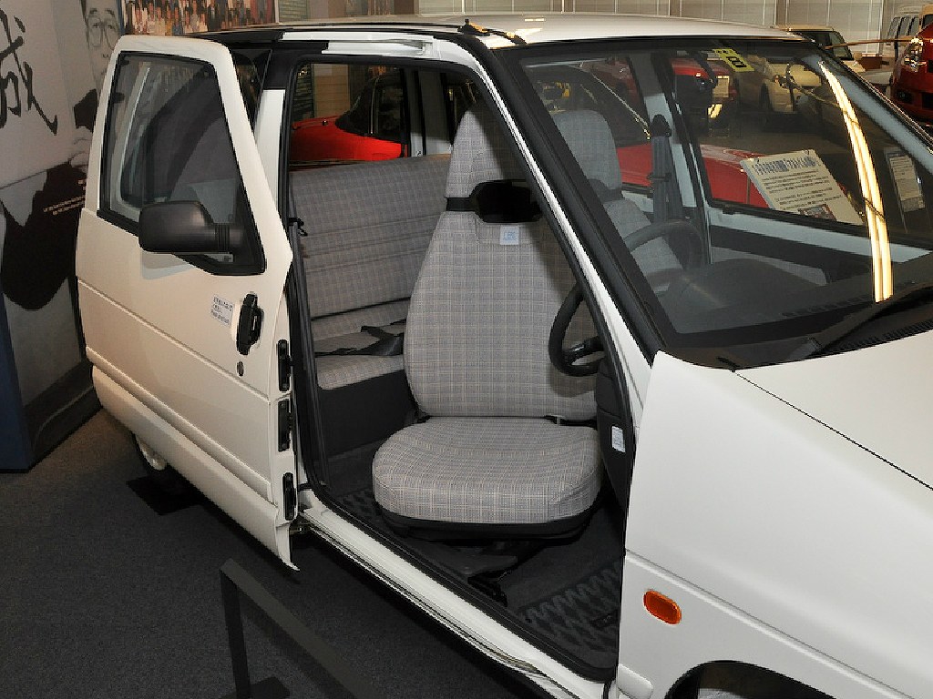 スライドドアと言ったら、ミニバン等に搭載されている事が非常に多いです。スライドドアは通常のドアに比べて開口部が大きくて乗り降りがしやすく、ボディと並行に開くのでスペースの狭い場所でも開閉が出来ると言う利点があります。現代では「スライドドアの車の方が普通のドアよりも多いんじゃないの?」と思うくらいに普及していますが、確かに家族で使うのであれば、狭い駐車場で隣の車を気にせず開け閉め出来るのは、子供や高齢者のいる家族には安心かもしれません。そんなスライドドアですが、実は日本車初のスライドドアは「何でこの車に採用した!?」と思う車に採用されていたのです。知らない方も多いかもしれませんが、日本車初のスライドドア搭載車はスズキ・アルトスライドスリムです。上記画像がそうなのですが、これは別に改造車でも何でもありません。スズキが1988年に発売した、完全なノーマル車です。ちなみにこの車はスライドドアだけではなく、回転式ドライバーズシートを言う新機能も備えていました。この2つの装備は「新しい女性ユーザーをターゲットにした。」との事らしいのですが、現存する車の数を見ると売れ行きは好ましくなかったと想像出来ます。